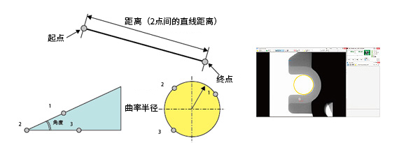 點(diǎn)擊指定的2點(diǎn)或3點(diǎn),即可測(cè)量“2點(diǎn)間距離”、“角度”、“曲率半徑”。